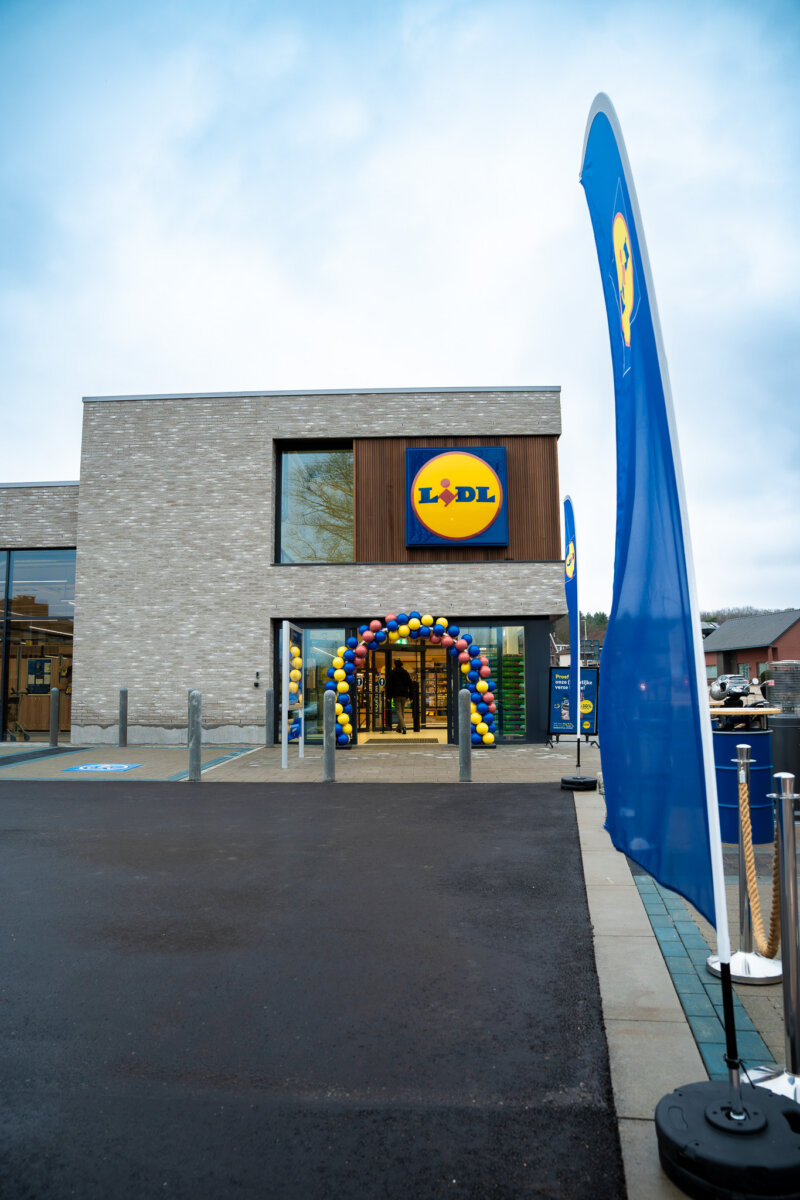 In functie van de stedenbouwkundige vereisten werd dit project bouwtechnisch benaderd als een residentiële ontwikkeling. Dit resulteerde in een afwijking van de standaard Lidl-typologie, met onder meer een langsgevel in residentiële architectuur en een voorgevel met een geïntegreerde vitrinezone.